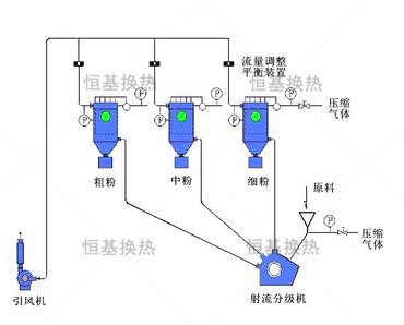 射流分級(jí)機(jī)具有非常準(zhǔn)確和穩(wěn)定的分級(jí)效果,適用于對(duì)產(chǎn)品質(zhì)量和穩(wěn)定性要求很高的精密分級(jí)??蓪⒃弦淮涡苑譃榇?、中、細(xì)粉三部分。